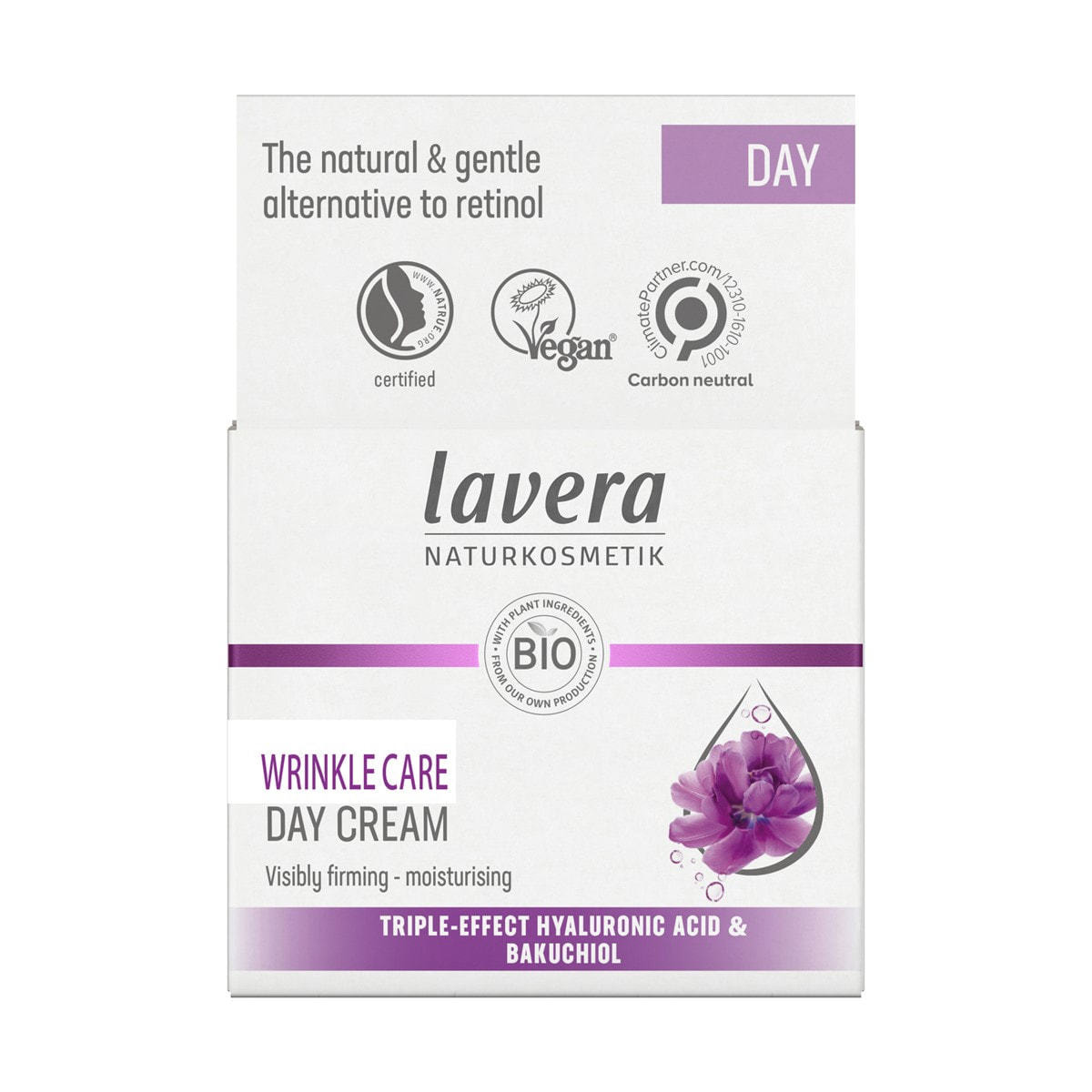 日中の乾燥や様々な環境からお肌を守りながら、植物由来のバクチオールとヒアルロン酸がハリのある明るい肌へと導きます。