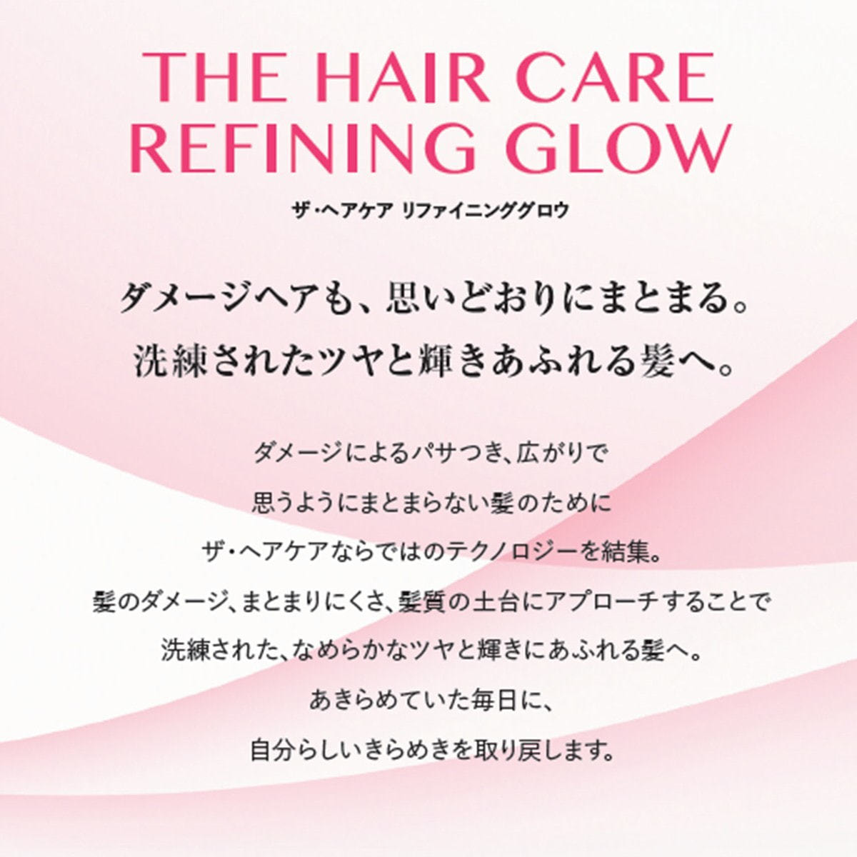 リファイニンググロウダメージによるパサつき、広がりで思うようにまとまらない髪のために ザ・ヘアケアならではのテクノロジーを結集。