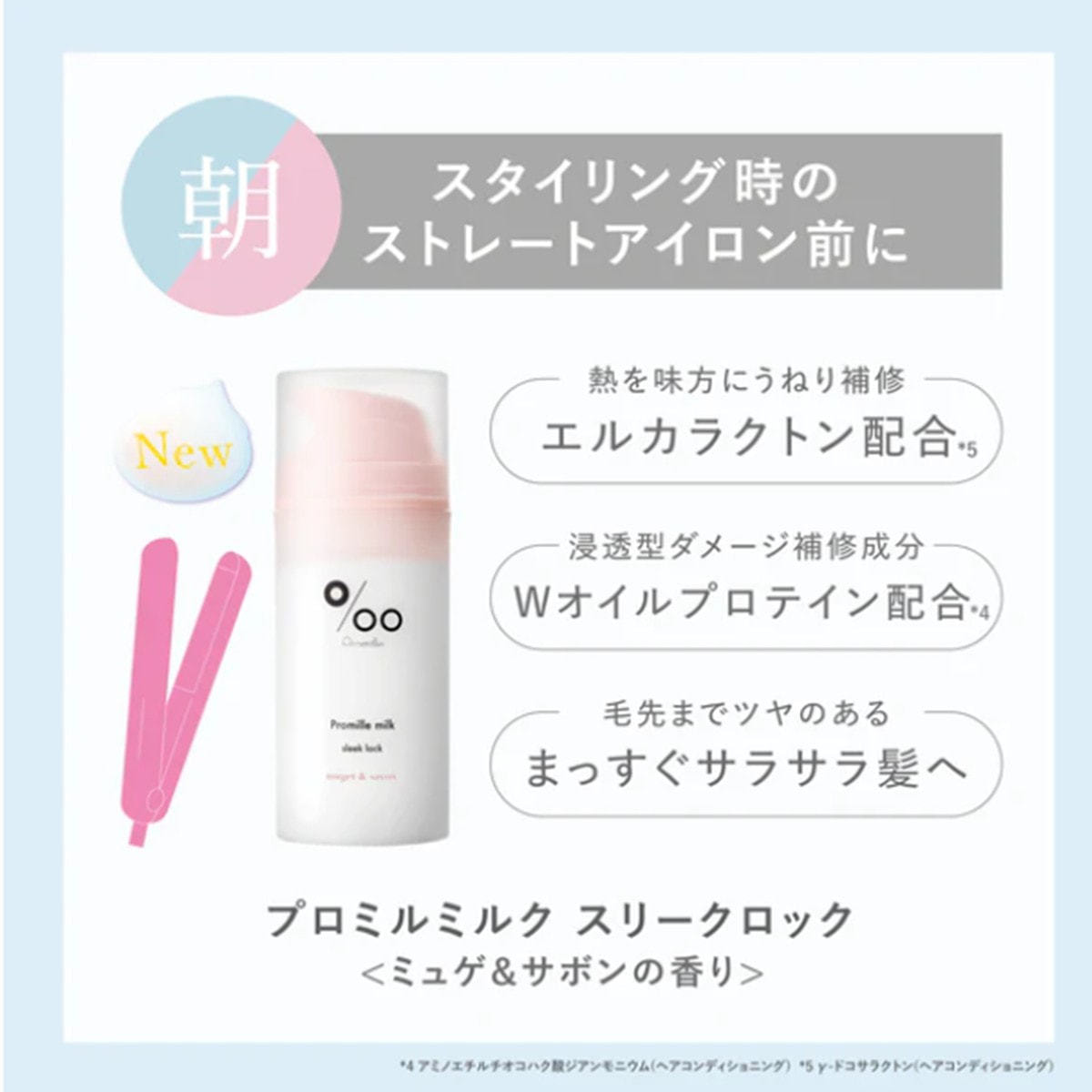 ※スタイリング前にご使用いただく場合は、塗布後にドライヤー等で乾かし、コテやアイロンでスタイリングしてください。