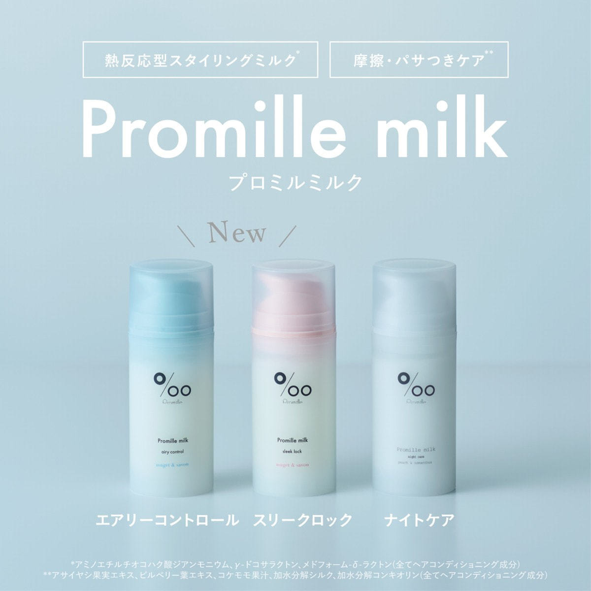 ※1イソステアロイル加水分解シルク、イソステアロイル加水分解コラーゲン(全て毛髪補修・保湿)